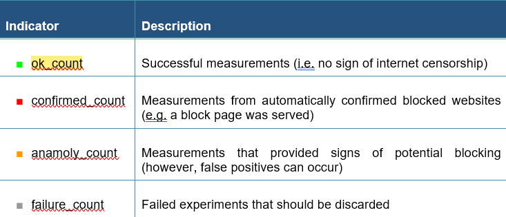 Table 3. The Breakdown of OONI Measurements for Various Tests